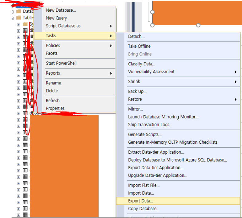 내보내려는 테이블 우클릭 -> TASK -> EXPROT Data