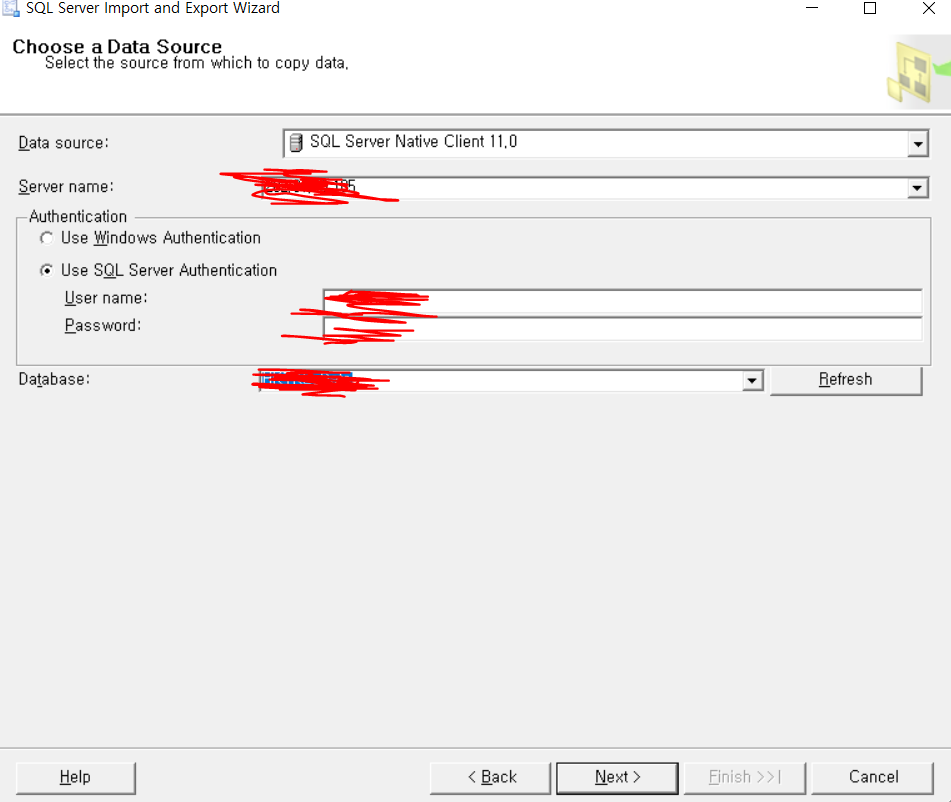 요점 정리 Source이든 Destination이든 SQL Server Native Clinet로 세팅하시는게 포인트입니다.
