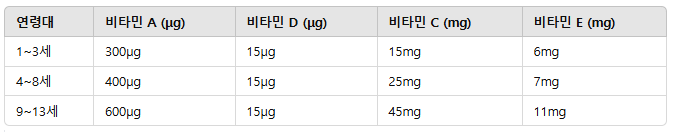 3. 어린이 비타민, 얼마나 먹어야 할까? (연령별 권장 섭취량)