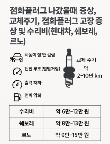 | 제조사 | 차종 예시 | 플러그 개수 | 수리비(부품+공임) |