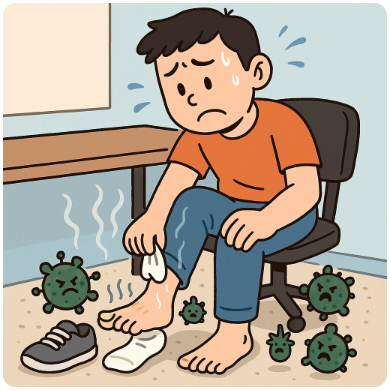 운동화나 구두처럼 통풍이 안 되는 신발을 오래 신는 경우,