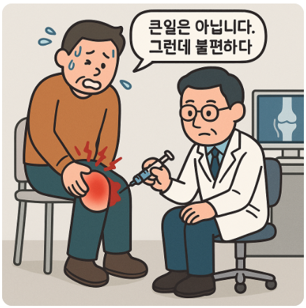 나중에 무릎 주사 맞고 물리치료 받는 상황이 생깁니다.